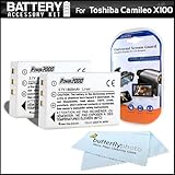 2 Pack Battery Kit For Toshiba Camileo X100 Full-HD Camcorder Includes 2 Extended (1850Mah) Replacement PX1657 Batteries + LCD Screen Protectors + MicroFiber Cleaning Cloth