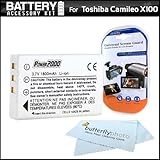 Battery Kit For Toshiba Camileo X100 Full-HD Camcorder Includes Extended (1850Mah) Replacement PX1657 Battery + LCD Screen Protectors + MicroFiber Cleaning Cloth