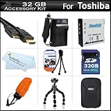32GB Accessories Kit For Toshiba Camileo BW10 Waterproof HD Video Camera Includes 32GB High Speed SD Memory Card + Extended Replacement (900 maH) PX1686 Battery + Ac/Dc Travel Charger + Mini HDMI Cable + Hard Case + FLOAT STRAP + 7" Flexible Tripod + More (Electronics)